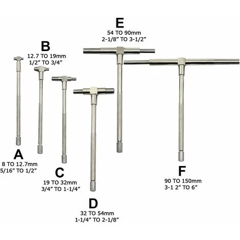 6-teiliges Lehren-Set: 5/16Zoll – 6Zoll (8 mm – 150 mm): Stärken 8–12,7, 12,7–19, 19–32, 32–54, 54–90 und 90–150 mm. Mit diesem Innendurchmesser-Messwerkzeug können Sie verschiedene Lochgrößen messen.