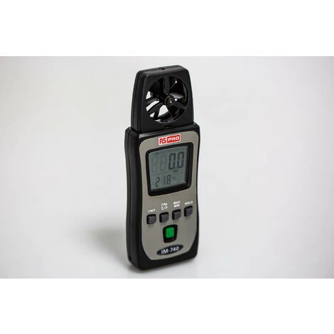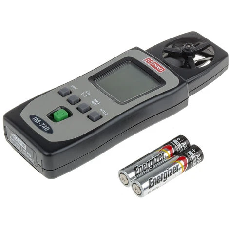 Batteries AAA de 1,5 V (x2), mallette de transport, manuel de l’utilisateur. Compteur de vitesse de l’air miniature de poche IM-740 de RS Pro. De la marque de confiance RS PRO, un mini anémomètre rotatif conçu pour mesurer la vitesse de l’air, la vitesse du vent et la température. Le compteur portatif numérique fournit des lectures Rapid précises sans compromettre les performances. Construit à partir de matériaux résistants à l’impact de haute qualité, ce compteur de poche RS RRO est idéal pour les ingénieurs et les techniciens HVAC pour les mesures sur place. Compact, l’anémomètre miniature RS PRO dispose d’un rotor en plastique intégré de 30 mm qui enregistre la vitesse du vent en passant par les pales. Avec une plage de mesure de 0,4 à 20 m/s, le compteur miniature RS PRO peut même être utilisé pour des vitesses de débit faibles. En outre, l’anémomètre miniature RS PRO peut mesurer simultanément la température de l’air grâce au capteur NTC précis. Le fonctionnement de l’instrument est simple, seulement 4 touches de commande permettent à l’utilisateur de faire défiler et de sélectionner la fonction requise. Le compteur RS PRO affiche les unités de vitesse de l’air en m/s, km/h, fpm, mph, kts et la température est sélectionnable en C° ou °F. Un grand écran LCD double affiche clairement les lectures et la fonction de maintien des données préserve les mesures à des fins de consignation. Caractéristiques et avantages. Economique Compacte et légère Double écran LCD Rotor de 30 mm Réponse de l’air léger 0,4 m/s Taux d’échantillonnage 1 fois par seconde Mesure de vitesse en m/s, ft/min, noeuds, km/h ou mph °C ou °F sélectionnable Minimum, Maximum, Moyenne et mise en attente des données Fonction de calcul du débit d’air Mise hors tension automatique. Applications. Les anémomètres à hélice sont utilisés pour mesurer les conditions environnementales rapidement et précisément. Les informations et les données qu’ils fournissent sont vitaux dans une large gamme d’applications et d’environnements. Essentiel pour la production de rapports, la prévision, la planification et, plus important encore, la santé et la sécurité. Certaines des applications les plus courantes sont. Ventilation et climatisation Construction Toits Navigation à voile, navigation de plaisance et planche à voile Escalade et randonnée Aviation, direction du vent, vitesse du vent et rafales Stations météorologiques et études météorologiques. Q : Existe-t-il une batterie de rechange recommandée ? R – Oui, cet anémomètre numérique RS PRO utilise des piles alcalines AAA 1,5 V pour son alimentation. Voir le code commande RS ; 744-2209 744-2209