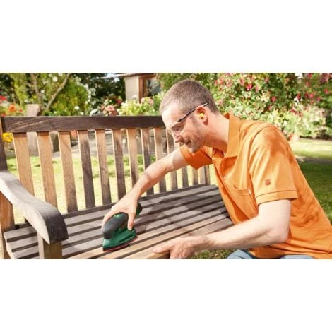Livré avec : 1 batterie PBA 12V 2,5Ah O-B, Chargeur AL 1115 CV, 3 feuilles abrasives G 80, G 120, G 160 (2 609 000 178).