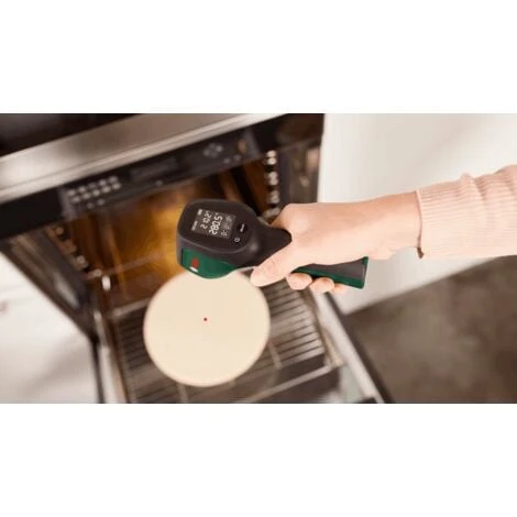 L’UniversalTemp permet de mesurer facilement des températures de surface. Sa technologie laser infrarouge offre une plage de mesure très étendue allant de -30 °C à +500 °C. Il offre le choix entre trois modes de mesure pour des résultats précis quel que soit le matériau et permet de commuter entre mesure unique et mesure continue pour personnaliser les résultats. Particulièrement ergonomique, le thermomètre est doté d’un écran rétro-éclairé à segments blancs sur fond noir assurant une bonne visibilité des résultats de mesure. Sur l’écran s’affichent la valeur de mesure actuelle et la valeur de mesure précédente pour une comparaison rapide en cours d’utilisation. L’UniversalTemp peut être utilisé aussi bien pour mesurer la température d’un réfrigérateur, d’un congélateur, d’un four ou d’une pierre à pizza que pour contrôler l’isolation de fenêtres et localiser d’éventuelles sources de déperdition de chaleur.