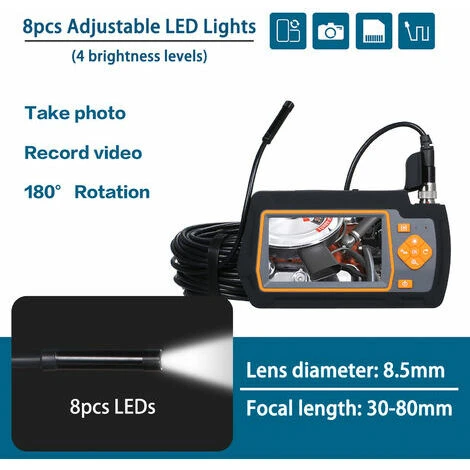 | Caractéristiques: 4.3in IPS écran LCD avec une résolution 480 * 272. 8pcs LED avec 4 luminosité de niveau, d’améliorer la luminosité et la définition des images. Angle de vision horizontal: 60 °, intervalle d’observation: 30-80mm (1.18-3.15in) résolution 1080P rend vrais, lumineux, des images vives et parfaitement montre ce que l’accaparement micro-caméra. Objectif de la caméra de 8.5mm avec un large champ de vision, dispositif d’alésage parfait portée pour la plupart des inspections sans désassembler. batterys rechargeable 2600mAh pour travailler jusqu’à 5 heures. IP67 tuyau étanche serpent souple semi-rigide contrôle facile à vérifier gab étroite. Largement utilisé dans les pipe-et galoches inspection des égouts, voiture et l’entretien des appareils ménagers. Caractéristiques: |