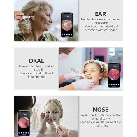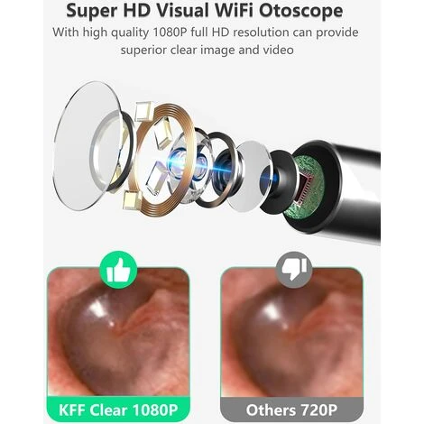 [Nouvelle boîte de rangement spéciale anti-perte] L’otoscope wifi amélioré dispose d’une boîte de rangement nouvellement conçue qui peut stocker en toute sécurité différents types de cure-oreilles. Le cache-poussière protège l’objectif de la poussière. Il peut également être connecté à la boîte de rangement, réduisant considérablement la possibilité de pièces manquantes [Pelle aile thermostatique de haute qualité] Votre pelle aile est faite d’un matériau PC de haute qualité, qui n’est ni trop dur, ni trop épais, ni trop fin. Votre nettoyage des oreilles peut nettoyer le cérumen parfaitement et efficacement sans rayer votre conduit auditif. Pas besoin de s’inquiéter de la chaleur ou du froid de l’otoscope USB, le système intégré maintient une température constante, vous permettant de retirer le cérumen en toute sécurité et confortablement [Otoscope à champ de vision ultra clair] L’otoscope utilise un support de lampe de 3,9 mm de diamètre avec une résolution haute définition.Cet otoscope peut facilement entrer dans les conduits auditifs de différentes tailles d’oreilles, vous offrant une vue claire et en temps réel de votre conduit auditif/tympan Vous aide à trouver et à retirer le cérumen plus facilement et en toute sécurité [Objectif étanche IP67 et longue durée de vie de la batterie] L’objectif de la caméra intra-auriculaire a un indice d’étanchéité IP67, qui est facile à nettoyer avec de l’eau ou à essuyer avec de l’alcool. Batterie rechargeable intégrée. [Peut non seulement être utilisé comme caméra auriculaire] Non seulement vous pouvez l’utiliser comme caméra auriculaire, vous pouvez également l’utiliser comme microscope numérique, comme une bonne aide pour l’inspection de la cavité buccale, de la cavité nasale, de la peau et d’autres pièces pour inspection. Ce kit de nettoyage des oreilles convient aux adultes et aux enfants. Bien sûr, non seulement les otoscopes numériques utilisés par les humains, mais aussi vos animaux de compagnie