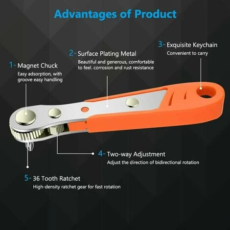【Large Gamme D’applications】- Le mini tournevis à cliquet Ancable à angle droit couvre presque les besoins pour la plupart des appareils électroménagers, automobiles, maisons, machines et autres équipements.