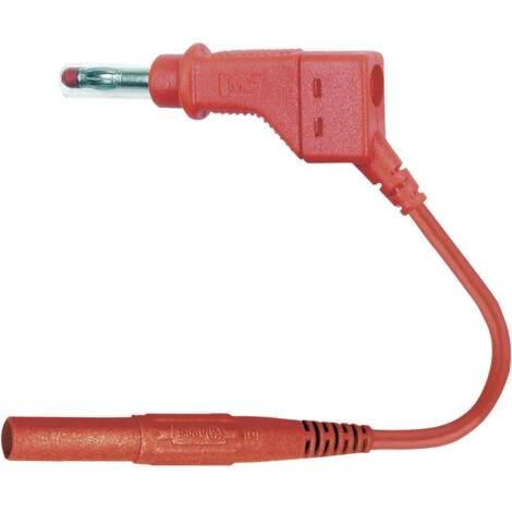 Cordons de mesure très flexibles, sur un côté fiche de 4 mm de diam. avec reprise arrière et une protection rétractable permettant de protéger contre le contact involontaire, plus spécialement conçus pour le raccordement aux appareils électriques pas (encore) équipés de prises de sécurité. De l’autre côté, fiche de 4 mm de diam. axiale avec une protection rigide, par exemple pour le branchement des pointes de touche ou des grippe-fils.