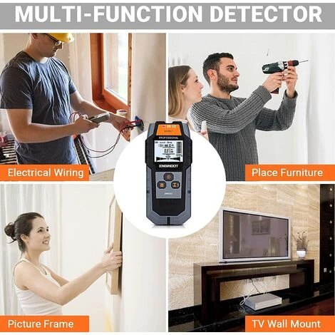 【4 en 1】Le scanner mural dispose de 4 fonctions, il s’adapte à détecter le métal, le bois, le magnétisme, le fil électrique AC. Vous pouvez fixer avec précision et rapidement la position des clous, vis, barres en acier, poutres en bois, câbles AC, etc