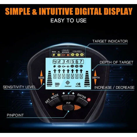 Écran LCD intuitif : Vous pouvez voir le mode de détection, le niveau de sensibilité, l’état de la batterie et le niveau de volume sur cet écran LCD. En outre, comparez avec l’autre détecteur, le détecteur de métaux Baesan a sept icônes plus intuitives sur l’écran. Il est plus précis et pratique de différencier le fer, l’or, le cuivre, l’argent