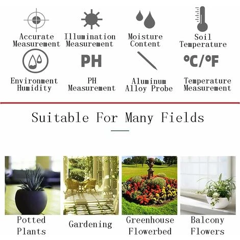 Consultant de maintenance de sol senior: Notre instrument de mesure du sol peut-il tester l’humidité, la température, l’humidité, la valeur du pH et l’intensité lumineuse des plantes pour vous aider à saisir la dernière situation en temps réel et