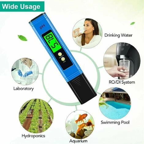 ·✔ Large gamme d’utilisations : le pH-mètre de poche est un testeur de pH idéal pour l’eau, les piscines, les aquariums, les sources chaudes, la culture hydroponique, la nourriture, le vin et la fabrication de bière.