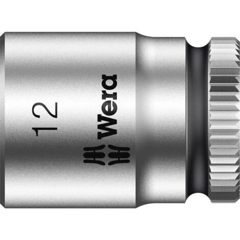 Douille à main et à machine (ISO 2725 – partie 3) signée Wera, permettant une utilisation manuelle et mécanisée. Avec repéreur d’outils « Take it easy » d’identification des calibres par couleur – pour trouver facilement et rapidement l’outil requis. Spécialement étudiée pour faciliter la préhension même avec des mains huileuses. Avec gorge de capture de bille. Pour vis à tête hexagonale et écrous hexagonaux. En chrome-vanadium, chromage mat.