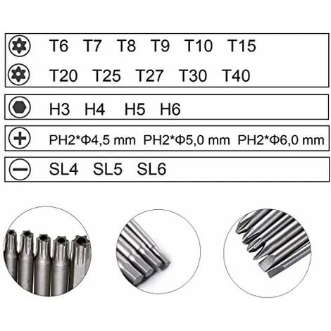 T6 T7 T8 T9 T10 T15 T20 T25 T27 T30 T40