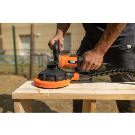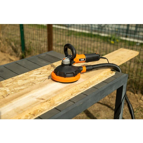 Béton, bois, parquets, cette ponceuse électrique d’une puissance de 1100W vous servira également en cas de meulage ou lustrage de finition.