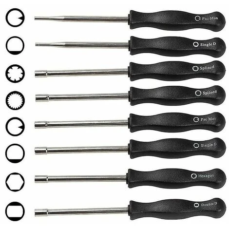Description du produit : 1) L’ensemble le plus complet d’outils pour carburateur comprenant tous les outils pour régler et nettoyer le moteur à carburateur 2 temps 2) Convient aux marques 3) 8 tournevis de réglage du carburateur comprenant : Pac Man / Small Head Pac Man / Single D / petite tête simple D / double D / hexagonale / 7 dents dentelée / tournevis 21 points 4) Design ergonomique, poignée antidérapante et carrée, acier inoxydable, plus de stabilité et de précision L’ensemble de 8 pièces comprend : 1 * Pac Man- Tournevis 1 * Tournevis Pac Man à petite tête 1 * Tournevis simple D 1 * Tournevis simple à petite tête D 1 * Tournevis double D 1 * Tournevis à six pans creux 1 * Tournevis à 7 dents 1 * Tournevis à 21 dents Veuillez noter: Veuillez nettoyer les vis sur les carburateurs avant utilisation, notamment le petit outil de réglage du tuyau