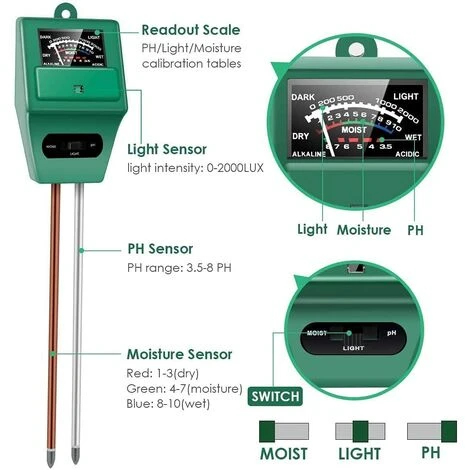 de votre jardin et pelouse. Avec une vérification rapide à l’aide du ph-mètre du sol, vous pouvez savoir si vous devez ajuster l’eau de la plante et la valeur du pH et si vos plantes reçoivent suffisamment de soleil.