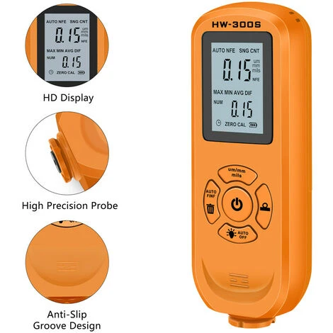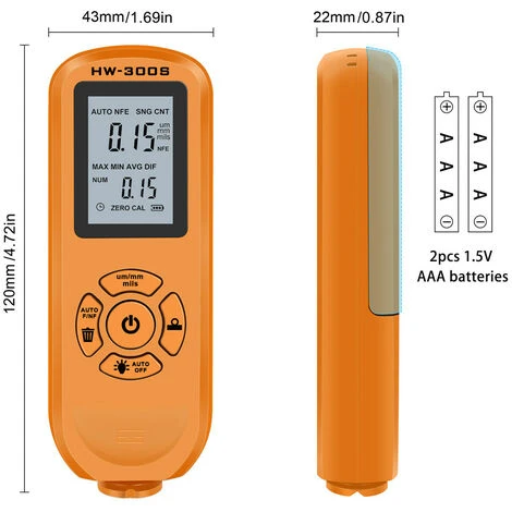 La jauge d’épaisseur est utilisée pour mesurer l’épaisseur de la tôle plaquée et revêtue sur le métal, par exemple la peinture/l’émail/le chrome sur l’acier, la peinture et le revêtement d’anodisation sur l’aluminium/le cuivre.