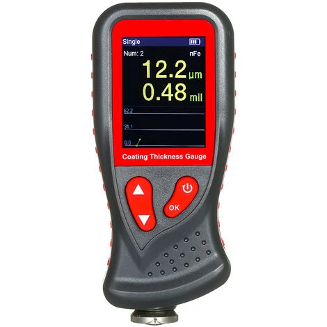 Jauge d’épaisseur de revêtement: mesure de l’épaisseur du revêtement non magnétique sur la surface du substrat métallique magnétique et du revêtement non métallique sur le substrat métallique non magnétique.