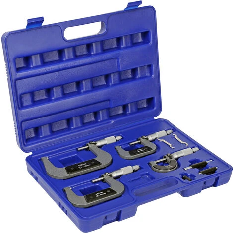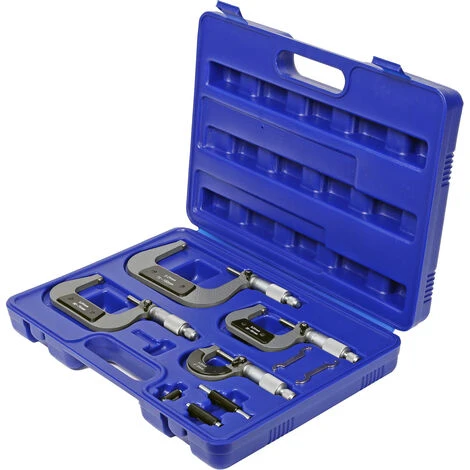 L’ensemble se compose de quatre micromètres avec les plages de mesure 0-25 mm, 25-50 mm, 50-75 mm et 75-100 mm, avec une précision de mesure de 0,01 mm. En somme, ces outils sont parfaits pour les mesures visant à un calibrage précis.