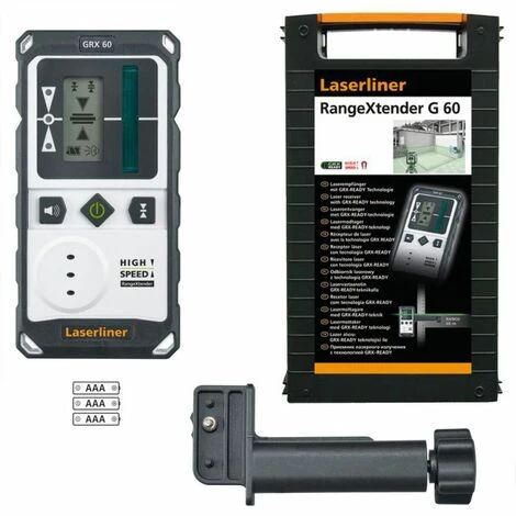 Ce récepteur laser est compatible avec tous les lasers à lignes vertes dotés de la technologie GRX-READY.Il permet une exécution rapide des alignements de près comme de loin. Lappareil détecte rapidement les lignes laser soumises à des pulsations de haute fréquence à une distance allant jusquà maximum 60 mètres. Se fixant facilement à des jalons darpenteur, il est idéal pour établir des mesures de référence. Laimant intégré sur le dessus facilite son positionnement sur des surfaces métalliques.