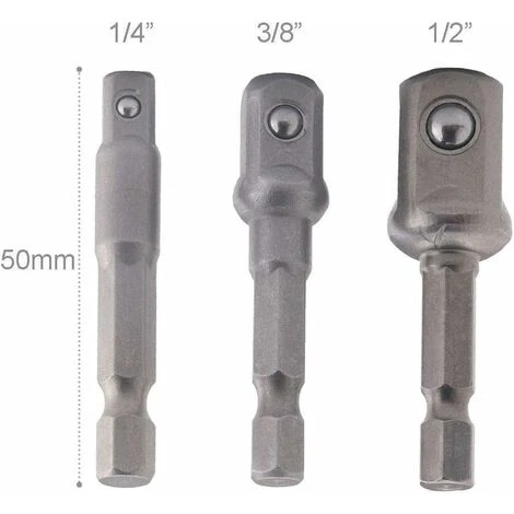 Contenu : lot de 3 adaptateurs de douille à impact : 1 x 1/2″, 1 x 3/8″ et 1 x 1/4″