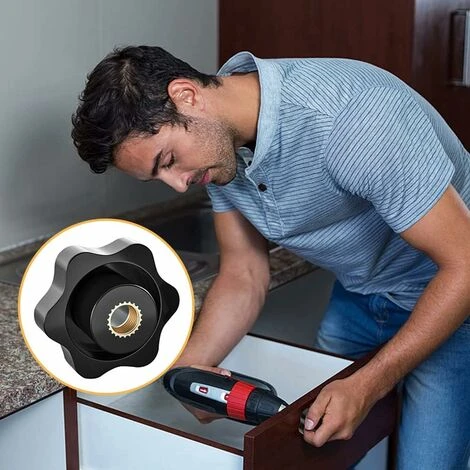 Solide et durable – Les boutons de serrage filetés sont fabriqués en bakélite noire et en laiton de haute qualité, technologie de moulage par injection, boutons à tête en forme détoile, belle apparence, isolation durable, résistance à la rouille et à la corrosion.
