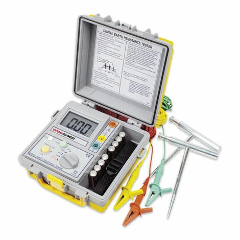 – Livré complet en coffret chantier avec câbles, piquets et 8 piles LR06 type AA