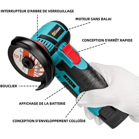 Nous savons que la durée de vie de la batterie de la tronçonneuse sans fil est votre préoccupation la plus importante. Notre meuleuse d’angle sans fil rechargeable est équipée de batteries au lithium 1/2 2000 mAh et d’un chargeur rapide. Les batteries lithium-ion avec protection contre les surcharges et la température offrent une durée de vie beaucoup plus longue.br />br />