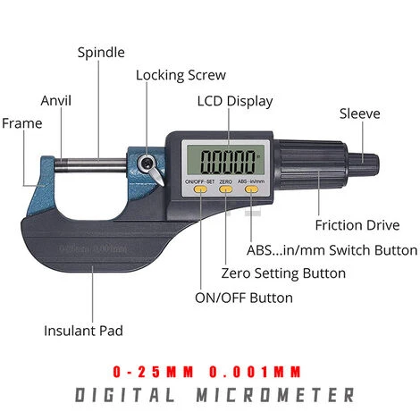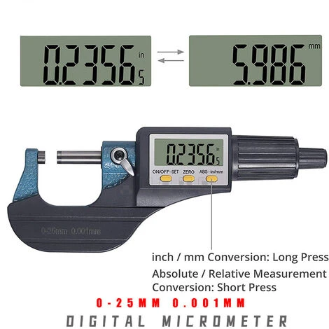 Micromètre électronique Micromètre Épaisseur de paroi Micromètre Micromètre numérique 0-25mm 0.001MM