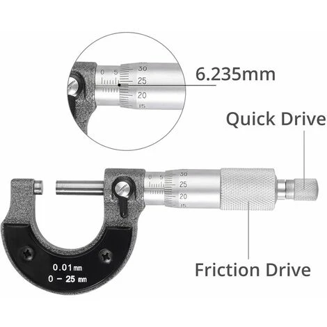 Micromètre extérieur précis Étrier Outil de mesure du diamètre extérieur Micromètre de 0 à 25 mm Graduation de 0,01 mm pour la réparation automatique et l’automobile :