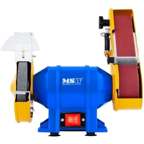 Le touret à meuler mixte GRIN250D de MSW est un appareil professionnel pour meuler et couper différents type de métaux sur votre établi. Cet appareil de meulage combine une bande et un disque abrasifs. Le design particulier et la grande efficacité énergétique du touret à meuler le rendent idéal pour travailler le bois, le métal ou le plastique. Cet appareil professionnel convient également pour un usage privé s’il s’agit de découper ou de meuler avec précision.