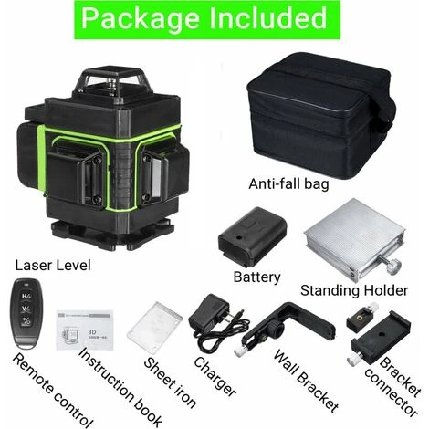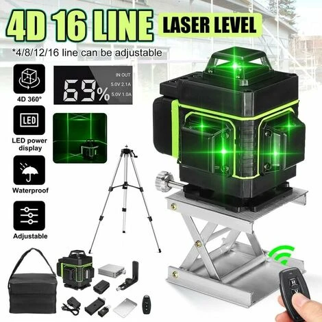 Affichage à LED 4D Niveau Laser Lumière Verte 360 ° Outil de mesure de nivellement automatique en croix à 16 lignes