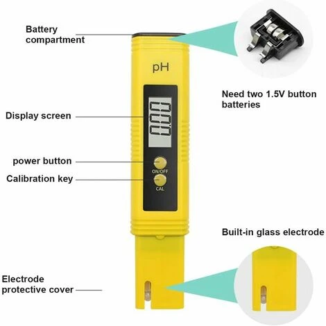 Durable et de haute qualité: très précis sur une plage de mesure de 0-14pH, résolution de 0,1pH, mesure et affiche le résultat pH simultanément avec l’affichage LCD, lecture rapide et fiable