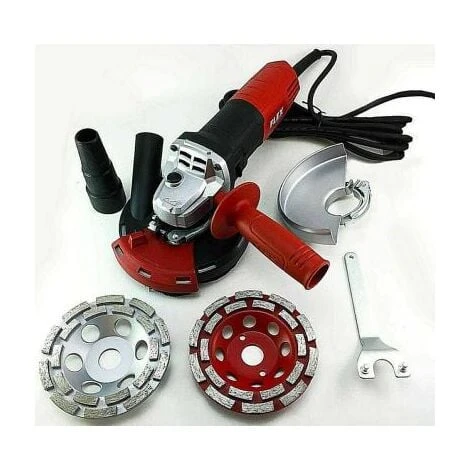 Contenu : Meuleuse d’angle Flex 800 watts + kit d’aspiration + 2 meules diamantées Premium différentes Ø 125 mm Le set de rénovation extrêmement léger et compact pour les petites et moyennes surfaces Utilisation: gommer et lisser les bosses, enlèvement des joints de coffrage, peau de boue, anciennes peintures et revêtements, préparation des substrats, par exemple lors du remplacement des carreaux, ponçage béton, chape, colle à carrelage, plâtre, peinture, enduits, colle à moquette, bois Le kit d’aspiration permet un meulage sans poussière. La finition du béton, de la chape, de la peinture, de la colle ou du plâtre peut grâce à ce kit se faire dans le respect de la santé. L’élément avant réglable du kit d’aspiration permet également travailler près du bord. Meule boisseau diamantée 125 x 22,2 mm – rouge : cette meule boisseau premium diamantée est recouverte en 2 rangées de segments diamantés. Durée de vie accrue. Idéal pour le traitement de chape ! , béton apparent, joints de béton, surplombs, nivellement des Meule boisseau diamantée 125 x 22,2 mm argent avec TROUS D’ASPIRATION EXTRA LARGES – Moins d’usure du segment et donc une durée de vie plus longue. Idéal pour le traitement du béton apparent, joints de béton, saillies, nivellement des sols, ponçage de divers matériaux tels que les résidus de peinture, vieille colle à carrelage, mortier, etc. Nous n’avons délibérément pas choisi un produit bon marché comme machine d’entraînement pour le kit de ponçage béton, car de grandes forces agissent sur l’arbre d’entraînement lors du meulage des surfaces. Comme pour tout appareil, des pauses de refroidissement occasionnelles sont recommandées à tous égards. Vous devez assembler les trois composants individuels.