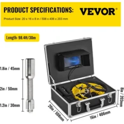 VEVOR Tuyau Camera 30m, Appareil-photo Deinspection LCD 7 » IP68, Serpent Moniteur 6 Heures Sur Seule Charge Video Industrielle DeInspection Vision De Nuit Support DeEndoscope Boite A Outils Portable