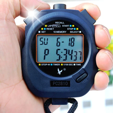 Professionnel chronomètre sport numérique minuteur, 2 lignes 10 mémoire, compte à rebours, alarme, batterie + cordon, PC2810