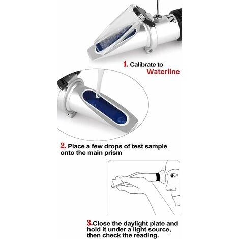 Facile à utiliser : placez 2 à 3 gouttes d’échantillon sur le prisme du réfractomètre, puis regardez à travers l’oculaire pour obtenir la lecture directe.