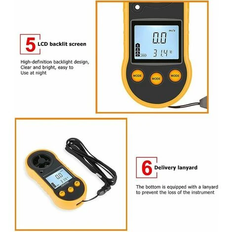 Facile à utiliser : l’anémomètre de la taille d’une paume a une poignée pour un transport facile, le débit d’air et la mesure de la température, la conception du rétroéclairage LED peut fonctionner dans des conditions de faible luminosité.