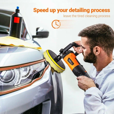 ★VITESSE VARIABLE ET DIVERS SCÉNARIOS – 6 cadrans à vitesse variable, permet à l’utilisateur de régler la vitesse de 1500 à 3500 tr/min pour différents matériaux et applications ; Un bouton de verrouillage de la broche à la tête pour une installation plus rapide du tampon.