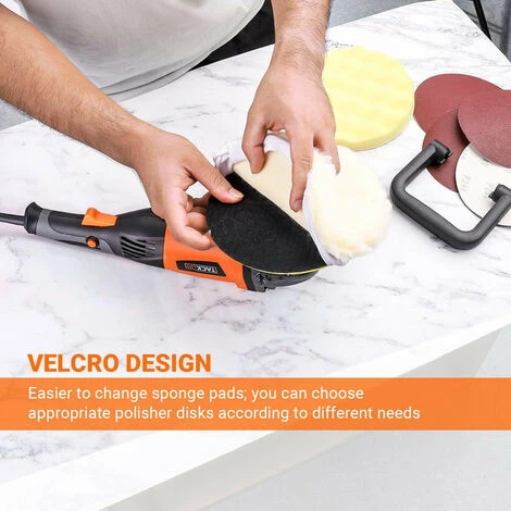 UTILISATIONS MULTIPLES – Convient pour le ponçage, le polissage, le cirage, le polissage du marbre, du bois, des murs et des motos, l’élimination de la rouille et d’autres utilisations de nettoyage, etc. Vous pouvez également remplacer le tampon de polissage par d’autres diamètres