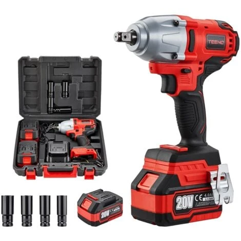 【Cadeau parfait】 1 × clé à chocs sans fil TEENO, 1 × batterie Li-ion 4,0 Ah, 1 × chargeur, 4 × clé à douille, 1 x boîte intérieure, 24 × mois de garantie.