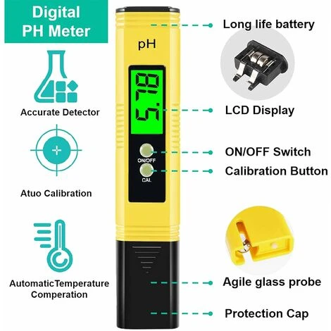 ·✔ Large gamme d’utilisations : le pH-mètre de poche est un testeur de pH idéal pour l’eau, les piscines, les aquariums, les sources chaudes, la culture hydroponique, la nourriture, le vin et la fabrication de bière.