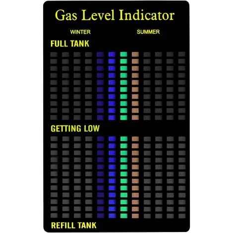 Équipement : Lire facilement le niveau de gazFixez le dos magnétique sur la bouteilleLes bandes à cristaux liquides changent de couleur à des températures différentesMesure la différence de température entre les phases liquide et gazeuseIndique un faible niveau de gaz avant que le gaz ne soit videUtilisable à plusieurs reprisesPour toutes les bouteilles de gaz en acier du commerce telles que le propane ou le butane