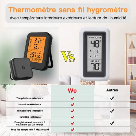 Le thermomètre d’intérieur pour la maison dispose d’un grand écran LCD avec de grands chiffres en gras et facile à lire même de loin.L’hygromètre numérique portable d’intérieur est non seulement léger, compact et facile à mettre dans votre poche et à mettre n’importe où dans votre maison ou à transporter à l’extérieur.
