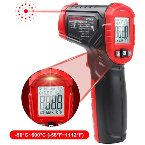 Thermomètre infrarouge portatif sans contact, SDLOGAL, thermomètre industriel infrarouge, -50 à 600°C/-58 à 1112°F, Ecran LCD Rétroéclairé(pas pour les humains)