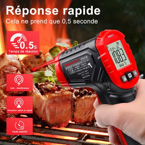 Conception polyvalente – la technologie infrarouge vous permet de mesurer les températures de surface de divers objets avec des températures au-dessus du point d’ébullition et en dessous du point de congélation; Utilisez-le pour la cuisson, les fours, les climatiseurs, les réfrigérateurs, le savon, les lits d’animaux de compagnie, etc.