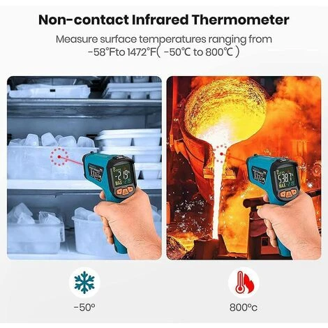 Le thermomètre infrarouge Tilswall est pratique pour l’intérieur et l’extérieur (même pour les objets en mouvement). Vous n’avez pas besoin d’être à proximité des objets à mesurer. Il suffit de se concentrer sur l’objet à mesurer et d’appuyer sur le bouton. En 0,5 seconde, vous pouvez obtenir la température de l’objet. Il vous permet de mesurer en toute sécurité les températures de surface à distance tout en conservant une grande précision. Il est utilisé dans divers domaines tels que la cuisine, le barbecue, la maintenance, le moulage, le forgeage, les essais, l’industrie de la congélation, etc.