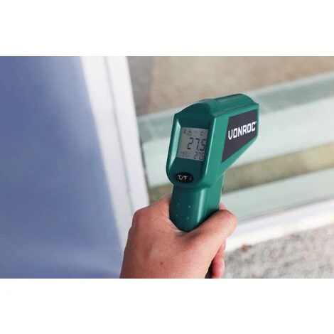 Vous souhaitez mesurer la température d’une surface rapidement et sans contact ? Cela est possible car le VONROC IT501DC est votre solution ! La seule chose que vous avez à faire est de pointer le laser vers la surface souhaitée et la température s’affiche directement sur le cadran numérique.