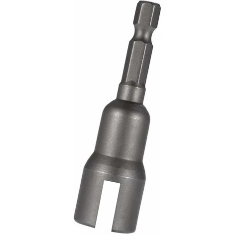 This Steel wing nut driver is a perfect tool that works with any power drill (1/4 inch hex shank). The total length of the tool is about 6.55cm(2.6 inch); the outer diameter of the socket is about 17.8mm(0.7 inch); and the slot cutout is 4mm(0.157 inch)