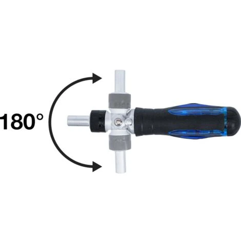 Mécanisme de pivotement à 180 du cliquet permet de travailler sur des éléments de raccordement difficiles d’accès, avec 5 positions de blocage.