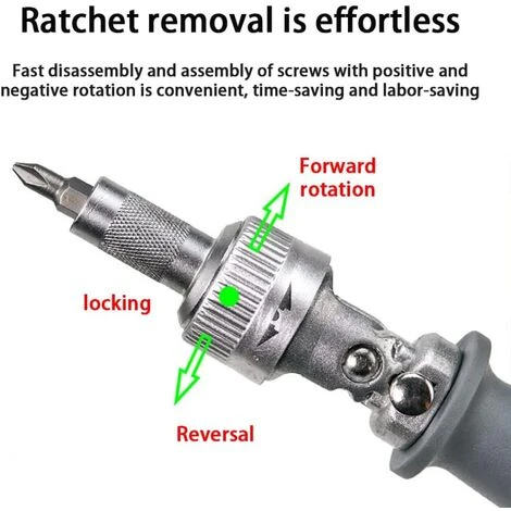 Conception 20 en 1: la poignée est équipée d’une douille de tournevis 1/4 et de 10 perceuses à double tête. Ce tournevis à cliquet peut être utilisé avec 20 tournevis normaux. Facultative à un tournevis: Y1, ph + 5,0 + 3.0) straight tournevis (- 3,0-5,0 6,0); Tournevis hexagonale :(T10, T15, T20, T25, T30); Tournevis hexagonale :(H2, H2.5, H3, H4, H5, H6) tournevis triangulaire :(2.3,U, U2.6).