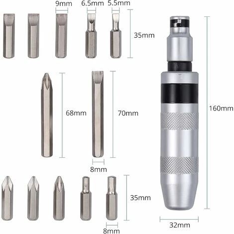 【Super Set】 – Notre produit comprend trois spécifications différentes pour les bits, six caractères, une croix et une marque, un total de 12 pièces et une poignée amovible de 1/2 pouce qui répondra largement à votre demande d’utilisation.