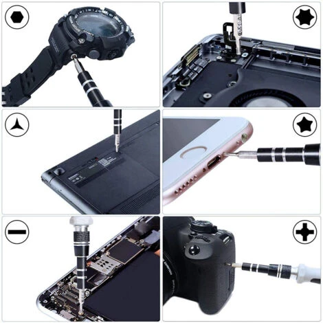 Arbre d��extension pour la reparation d��outils: Ce mini ensemble d��outils est livre avec un arbre d��extension reglable pour fixer certaines vis en position profonde et atteindre des zones etroites.